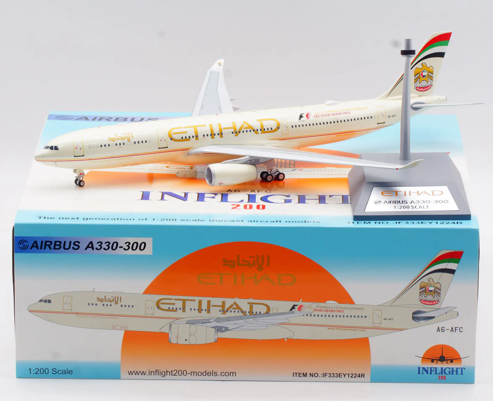 Collectible Diecast Aircraft Model Airbus A330-300 IF333EY1224R INFLIGHT 1:200 Etihad Airways Reg: A6-AFC