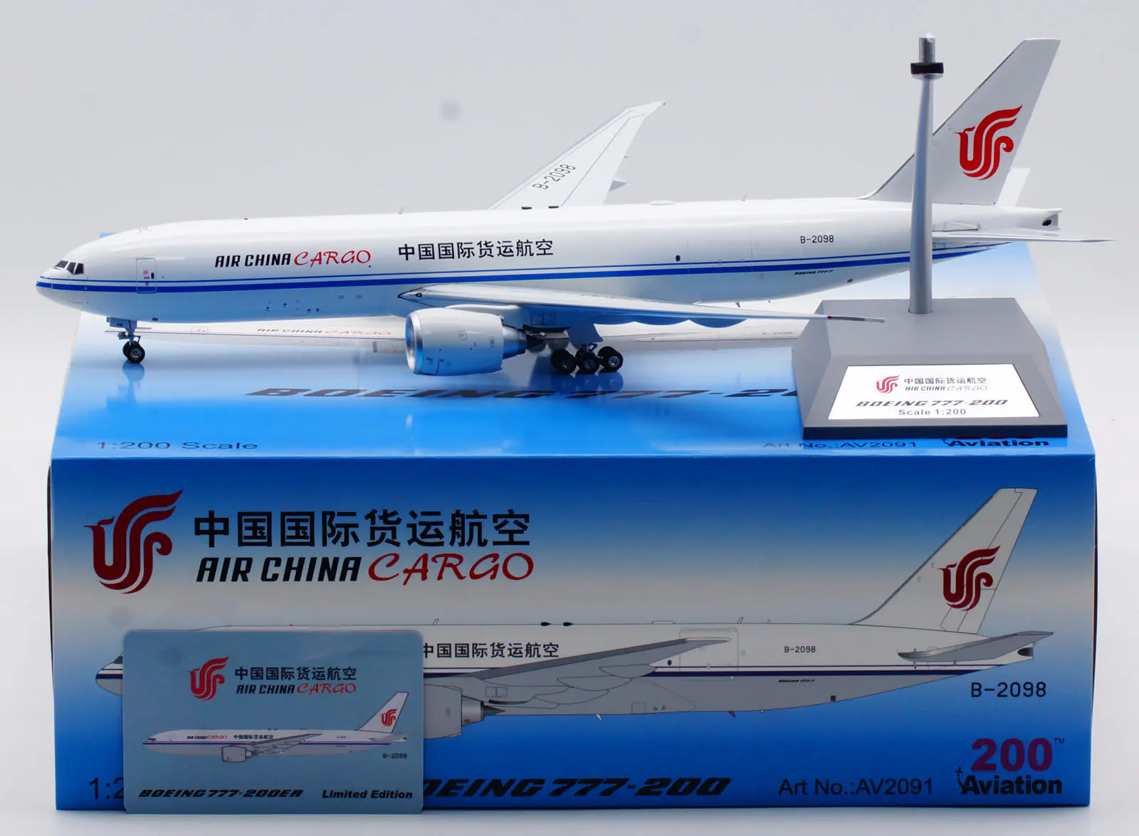 Collectible Diecast Aircraft Model Boeing B777-200ER AV2091 Aviation 1:200 AIR CHINA CARGO Reg: B-2098