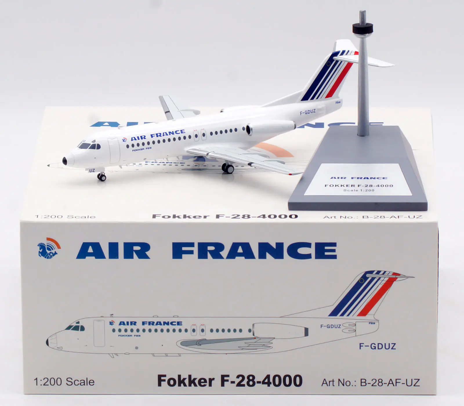 Collectible Diecast Aircraft Model FOKKER F-28-4000 B-28-AF-UZ B-Models 1:200 Air France Reg: F-GDUZ
