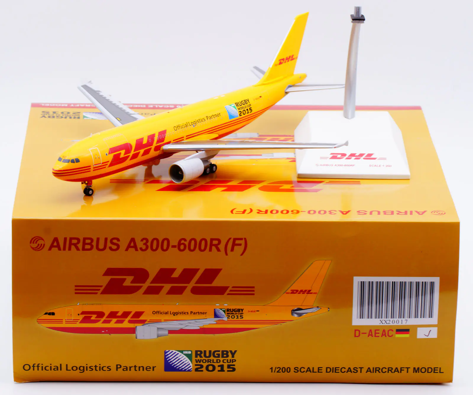 Collectible Diecast Aircraft Model Airbus A300-600R(F) XX20017 JC Wings 1:200 DHL Reg: D-AEAC