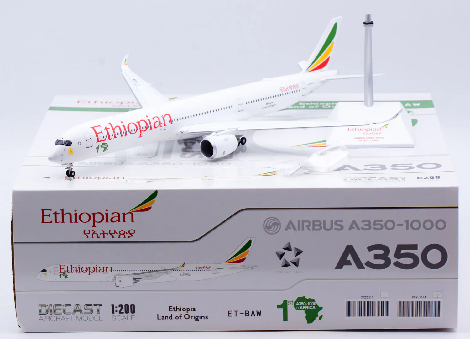 Collectible Diecast Aircraft Model Airbus A350-1000 XX20514A JC Wings 1:200 Ethiopian Airlines Reg: ET-BAW Flaps Down