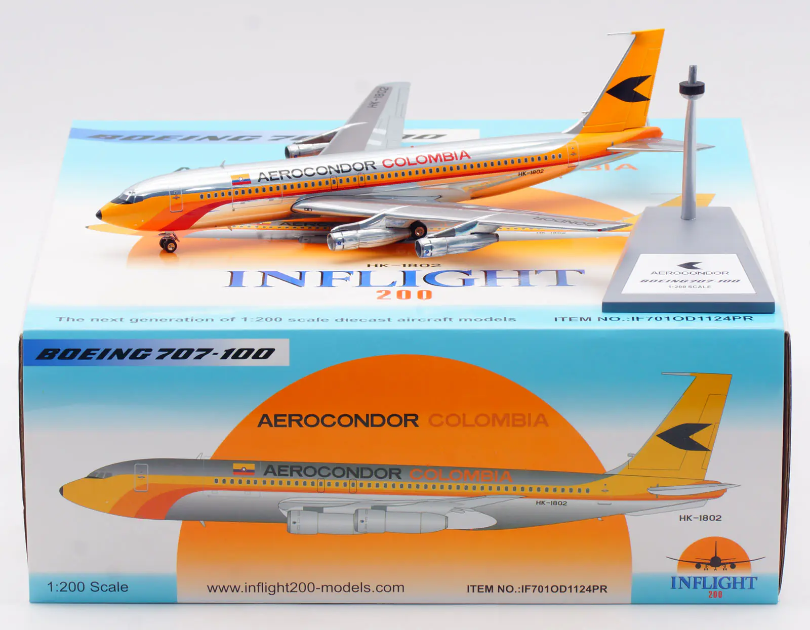 Collectible Diecast Aircraft Model Boeing B707-100 IF701OD1124PR INFLIGHT 1:200 Aerocondor Colombia Reg: HK-1802
