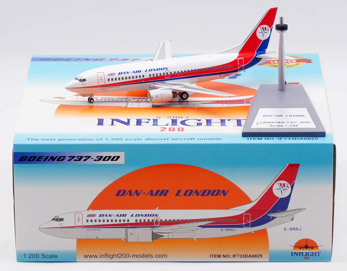 Collectible Diecast Aircraft Model Boeing B737-300 IF733DA0825 INFLIGHT 1:200 Dan-Air London Reg: G-BNNJ
