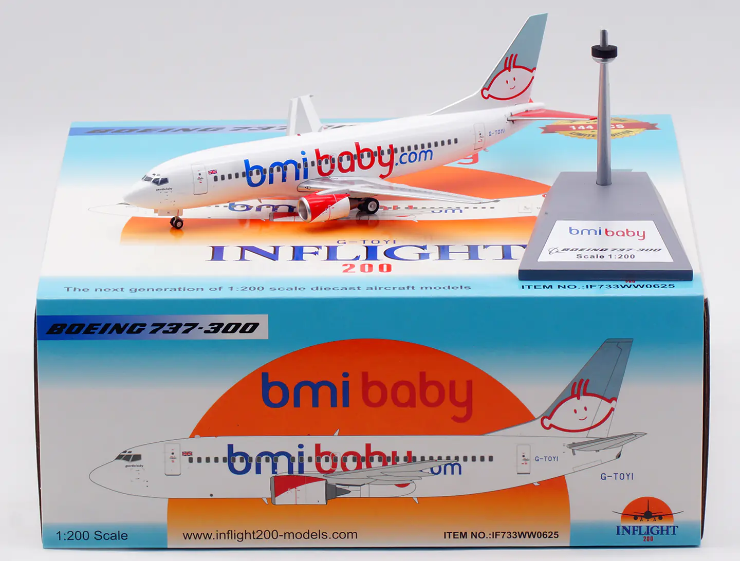 Collectible Diecast Aircraft Model Boeing B737-300 IF733WW0625 INFLIGHT 1:200 Bmibaby Reg: G-TOYI
