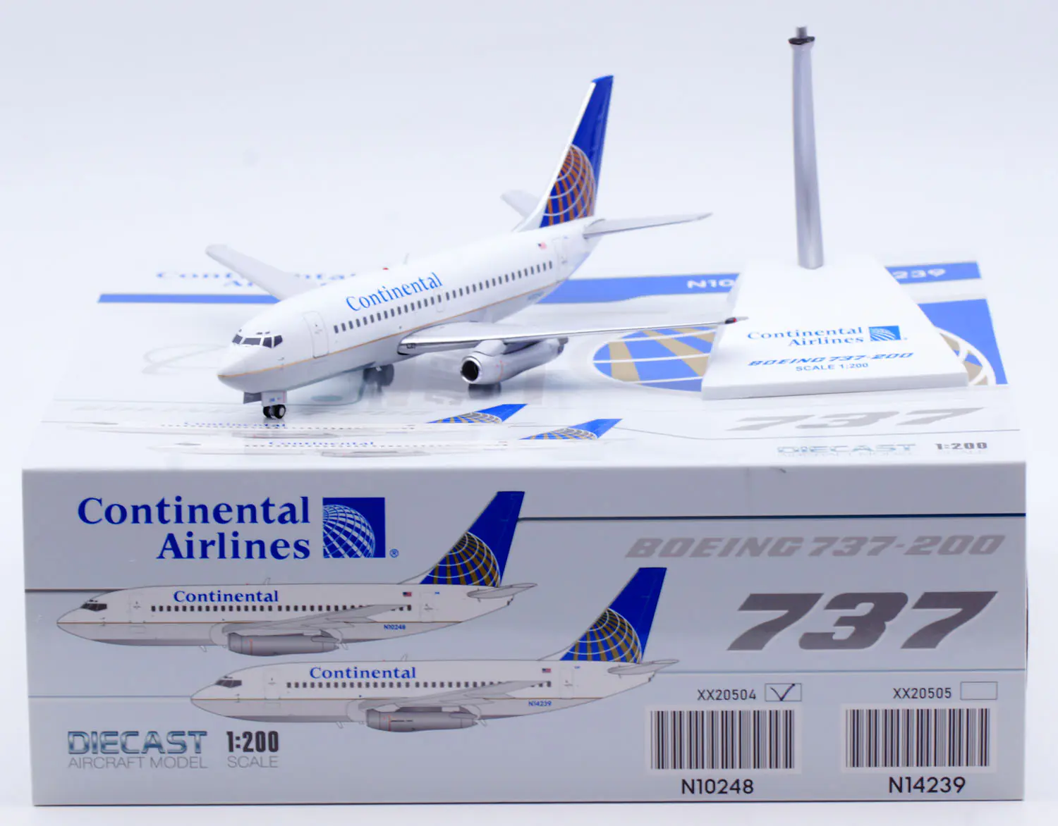 Collectible Diecast Aircraft Model Boeing B737-200 XX20504 JC Wings 1:200 Continental Airlines [Polished] Reg: N10248