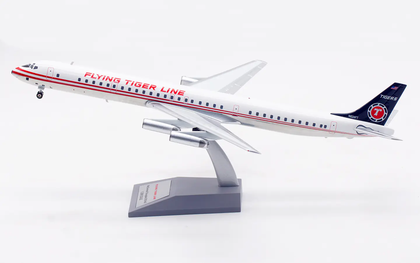 Collectible Diecast Aircraft Model McDonnell Douglas DC-8-63 IF863FT1125P INFLIGHT 1:200 Flying Tiger Line Reg: N624FT