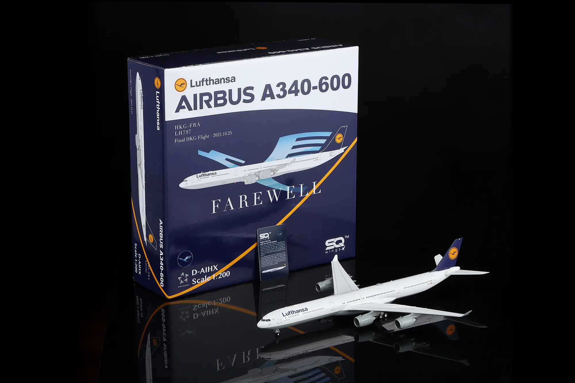 Collectible Diecast Aircraft Model Airbus A340-600 L2282 SQ Wings 1:200 Lufthansa Reg: D-AIHY