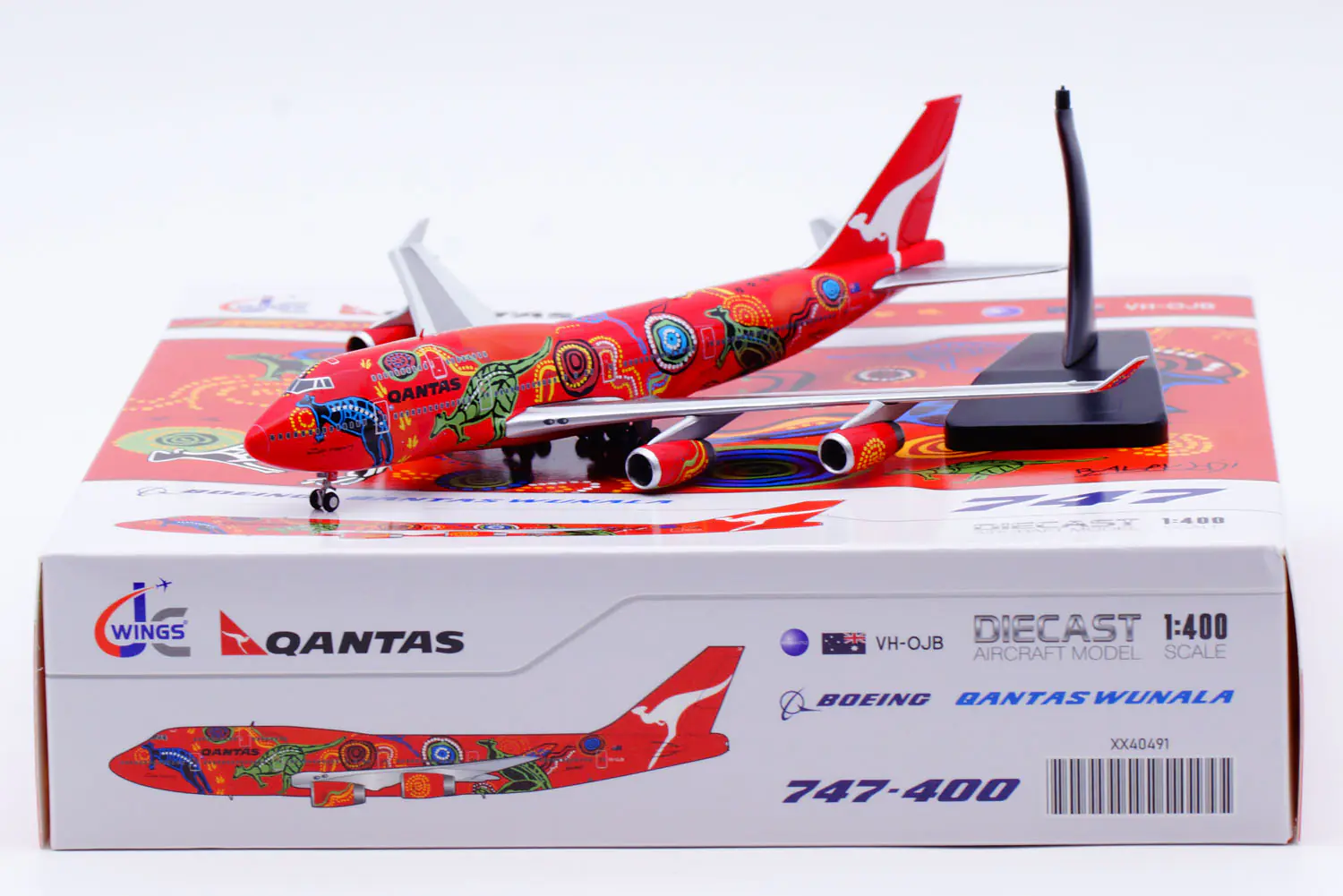 Collectible Diecast Aircraft Model Boeing B747-400 XX40491 JC Wings 1:400 Qantas Airways Reg: VH-OJB
