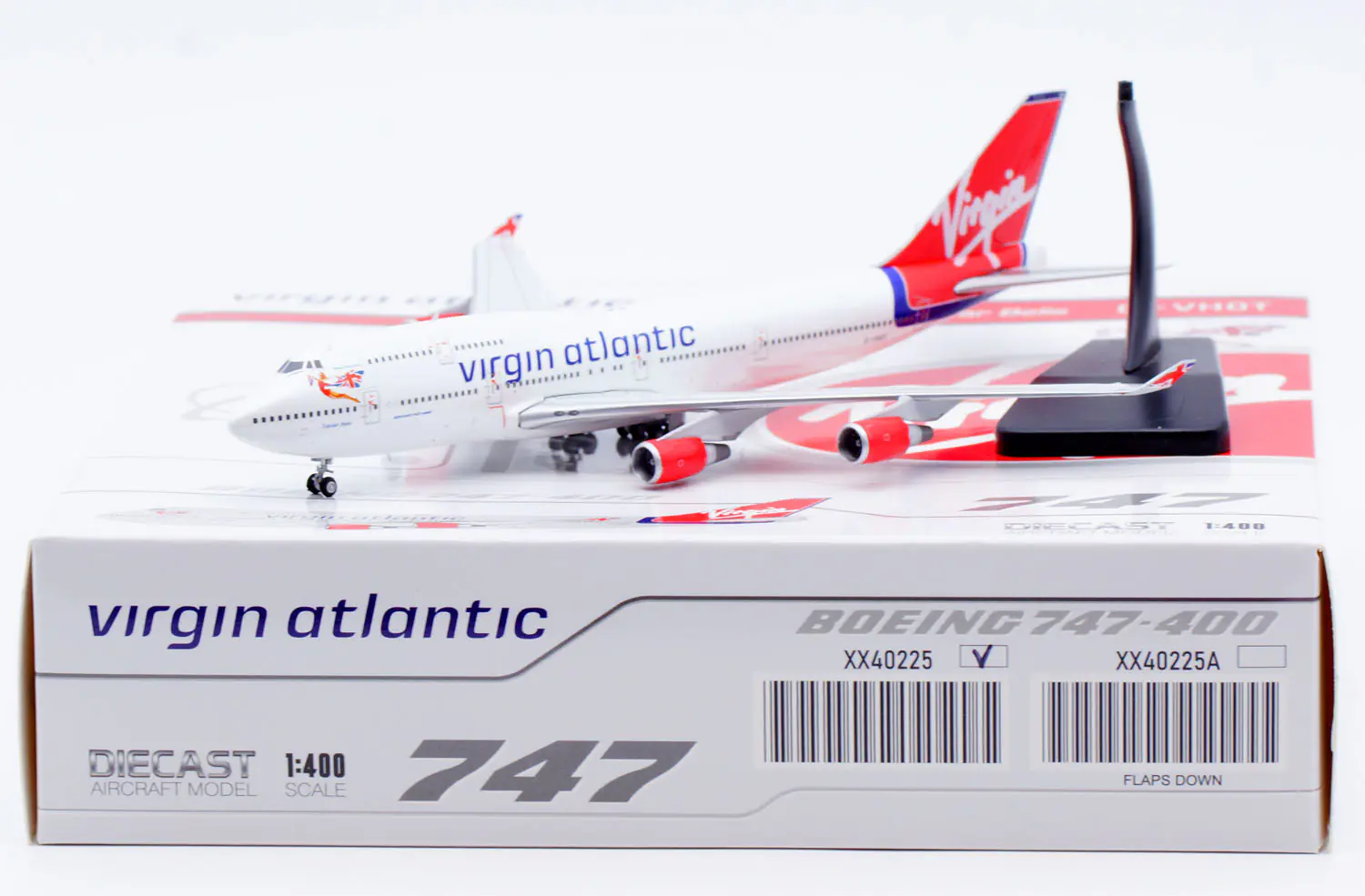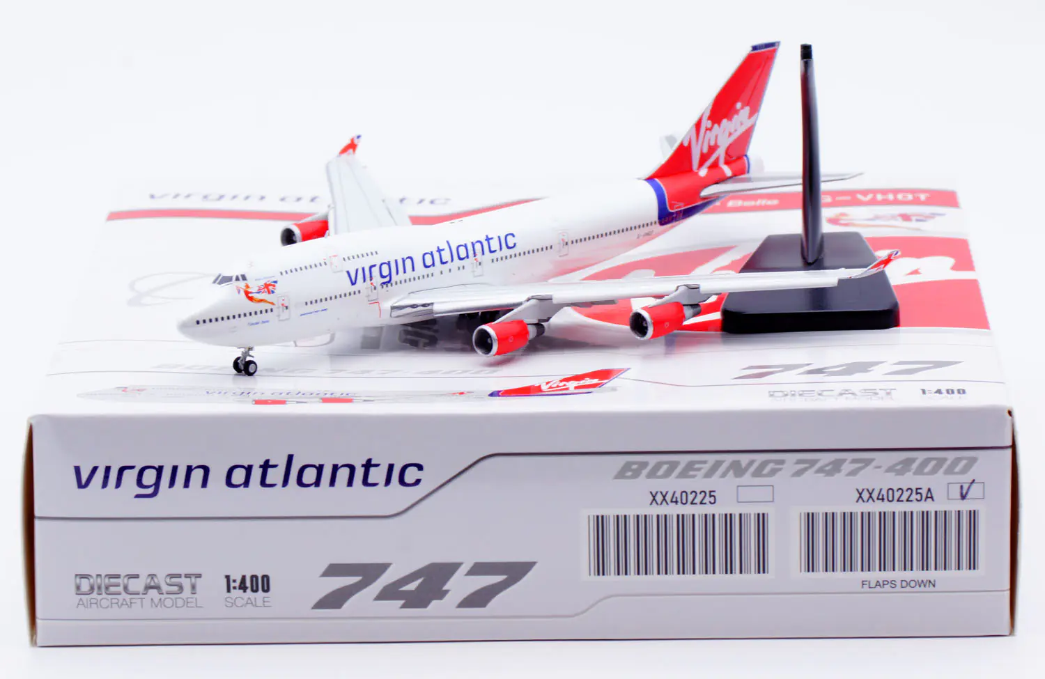 Collectible Diecast Aircraft Model Boeing B747-400 XX40225A JC Wings 1:400 Virgin Atlantic Reg: G-VHOT Flaps Down