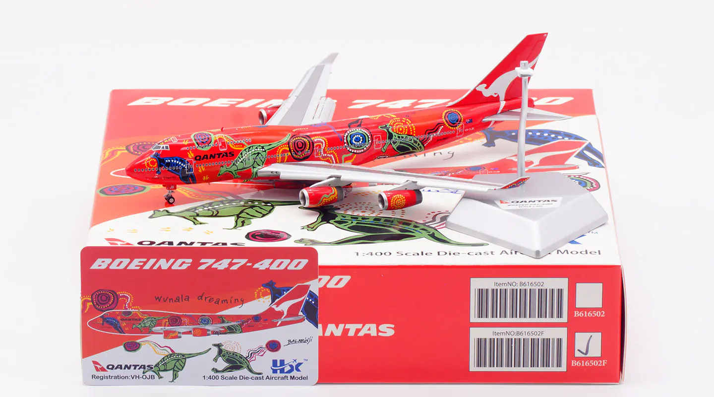 Collectible Diecast Aircraft Model Boeing B747-400 B616502 HX Models 1:400 Qantas Airways Reg: VH-OJB