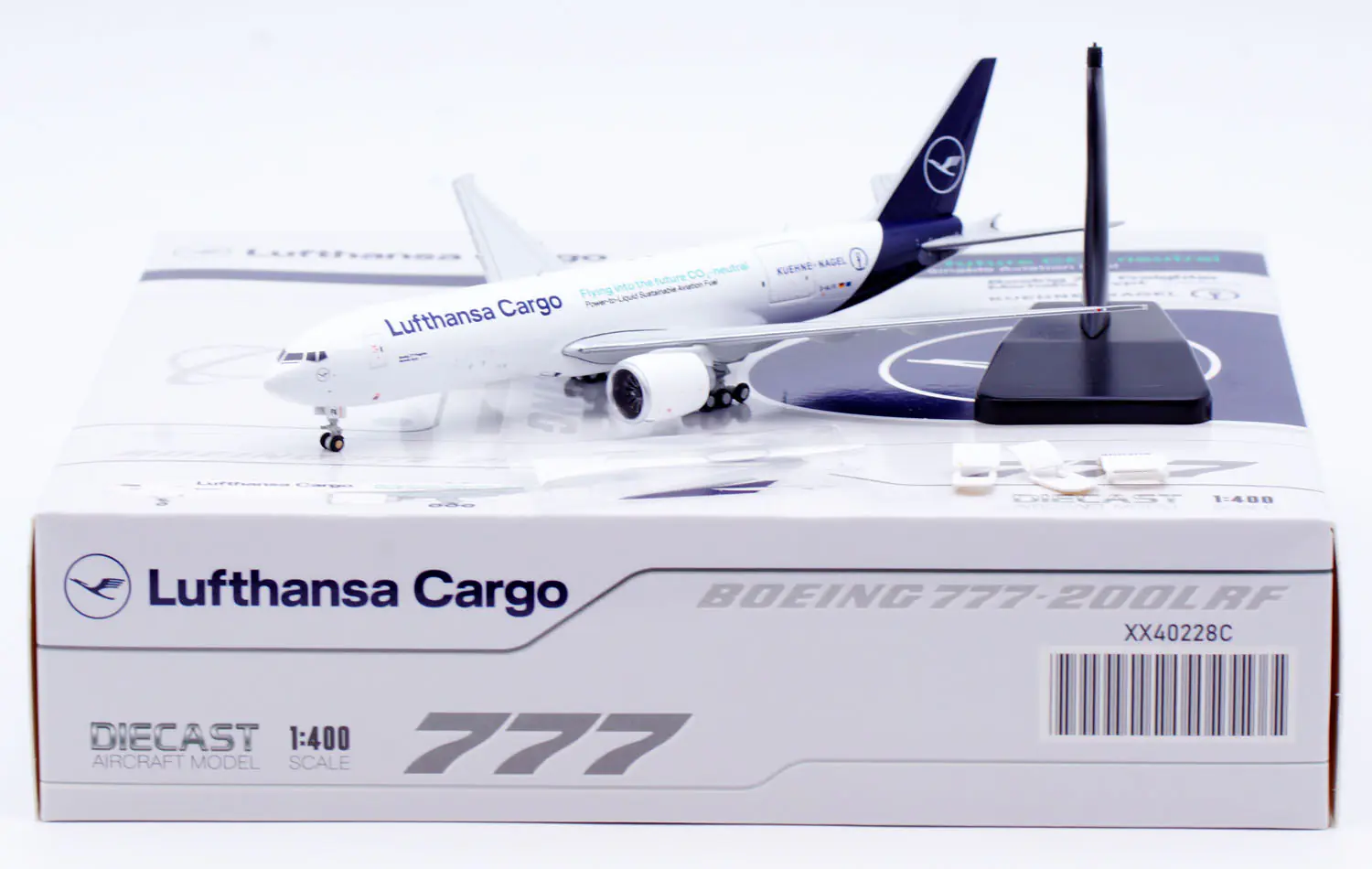 Collectible Diecast Aircraft Model Boeing B777F XX40228C JC Wings 1:400 Lufthansa Cargo [Interactive Series] Reg: D-ALFK
