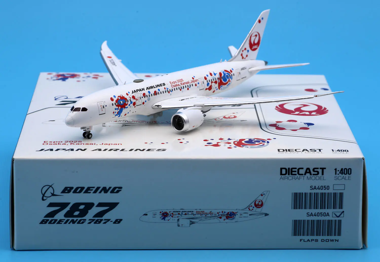 Collectible Diecast Aircraft Model Boeing B787-8 SA4050A JC Wings 1:400 Japan Airlines JAL Reg: JA823J Flaps Down