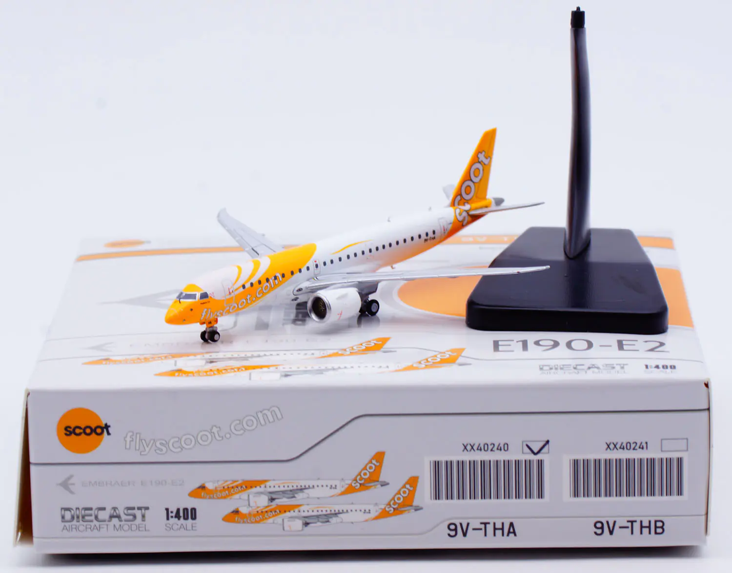 Collectible Diecast Aircraft Model Embraer E190-E2 XX40240 JC Wings 1:400 Scoot Reg: 9V-THA