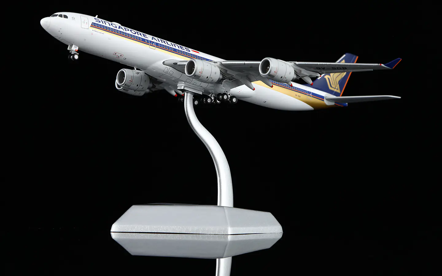 Collectible Diecast Aircraft Model Airbus A340-500 A530104F HX Models 1:400 Singapore Airlines Reg: 9V-SGD Flaps Down