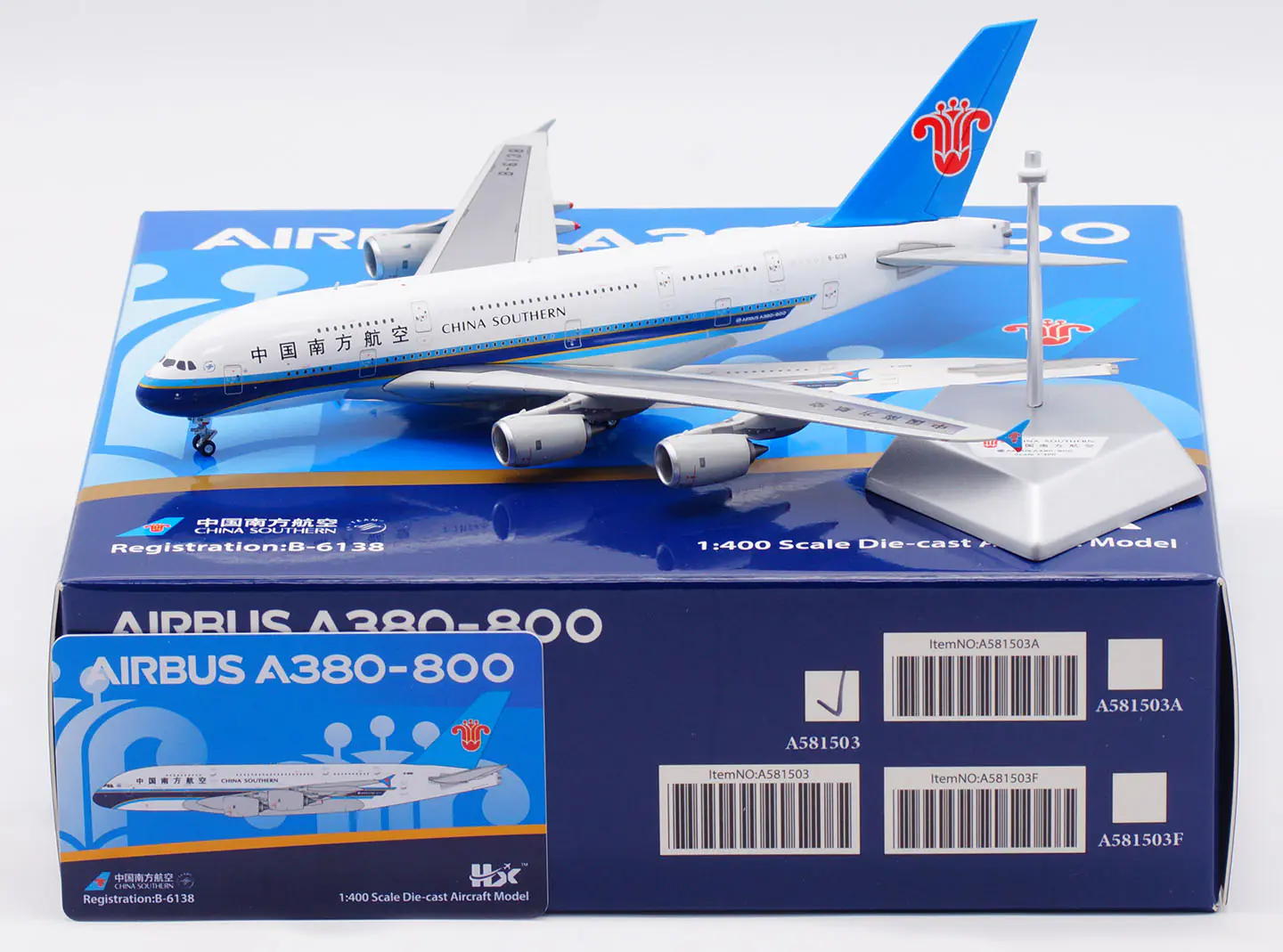 Collectible Diecast Aircraft Model Airbus A380-800 A581503 HX Models 1:400 CHINA SOUTHERN Airlines Reg: B-6138