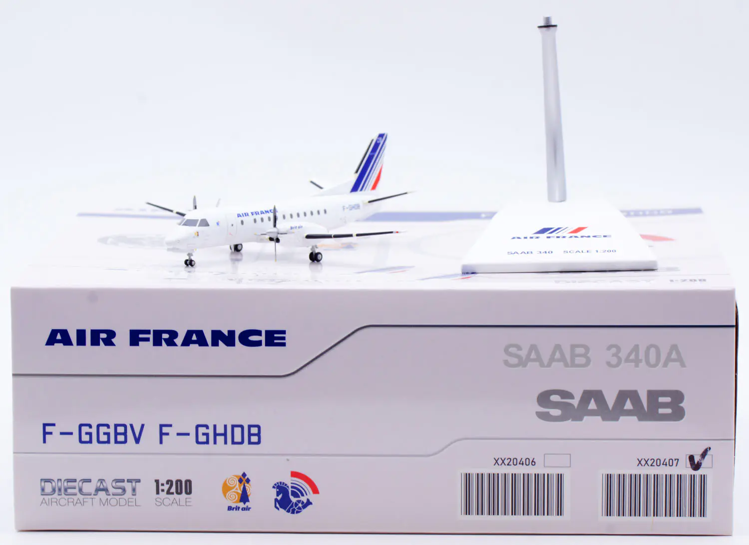 Collectible Diecast Aircraft Model Saab 340 XX20407 JC Wings 1:200 Air France Reg: F-GHDB