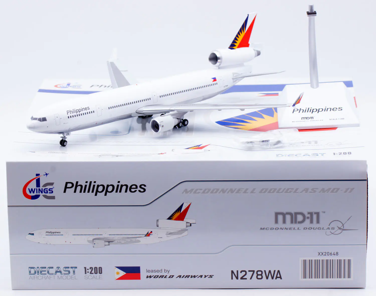 Collectible Diecast Aircraft Model MCDONNELL Douglas MD-11 XX20648 JC Wings 1:200 Philippines Airlines Reg: N278WA