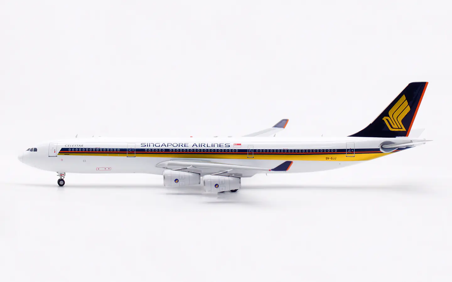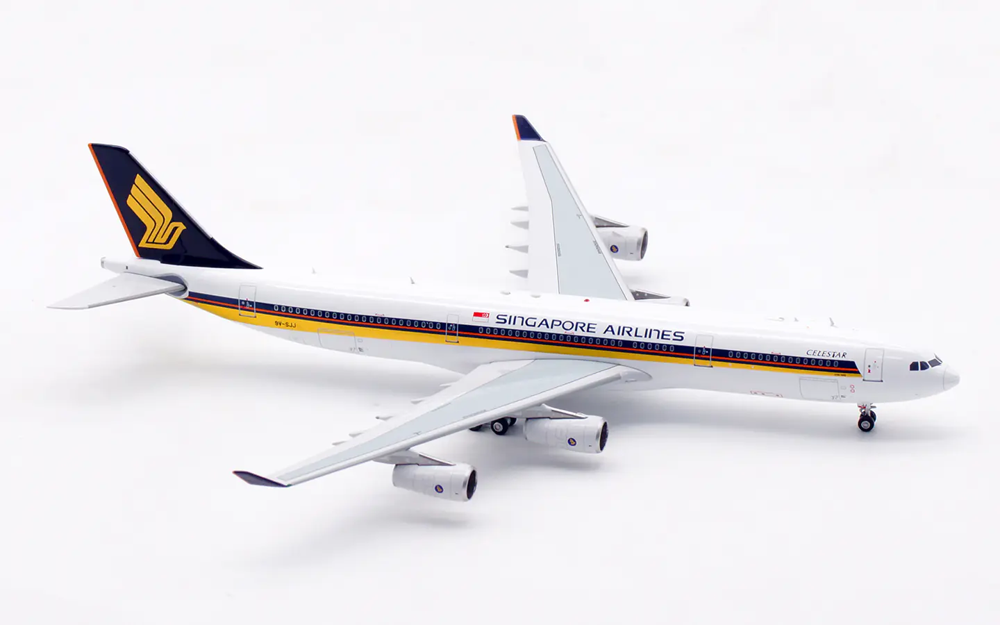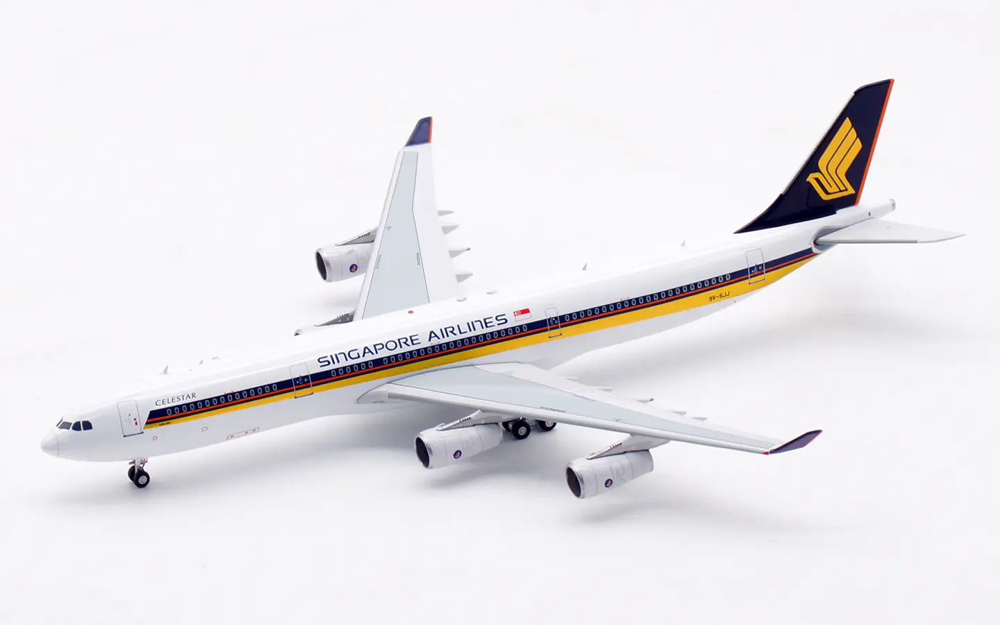 Collectible Diecast Aircraft Model Airbus A340-300 AV4317 Aviation 1:400 Singapore Airlines Reg: 9V-SJJ & tractor