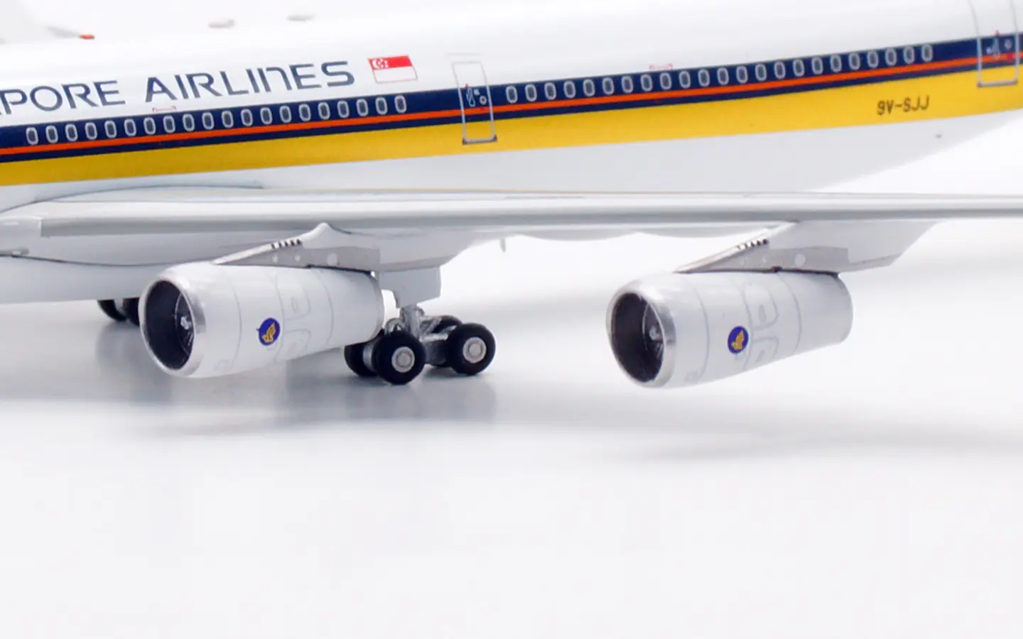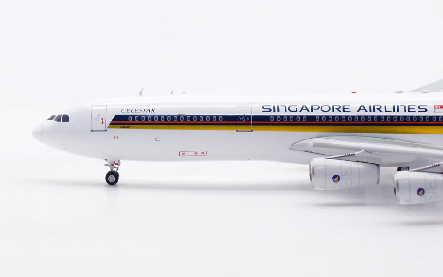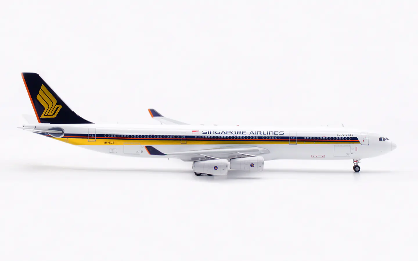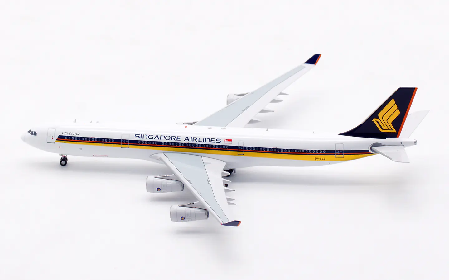 Collectible Diecast Aircraft Model Airbus A340-300 AV4317 Aviation 1:400 Singapore Airlines Reg: 9V-SJJ & tractor