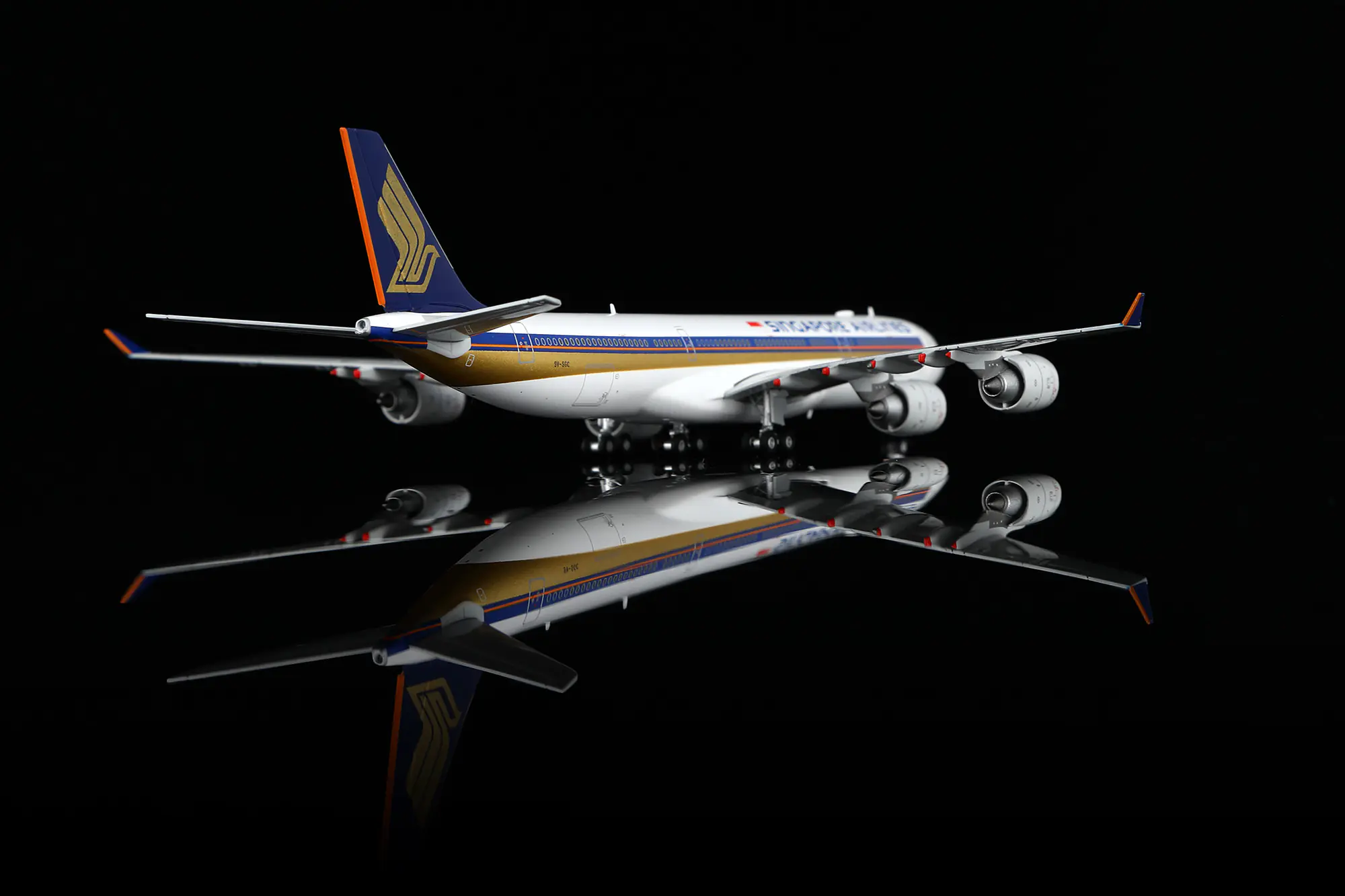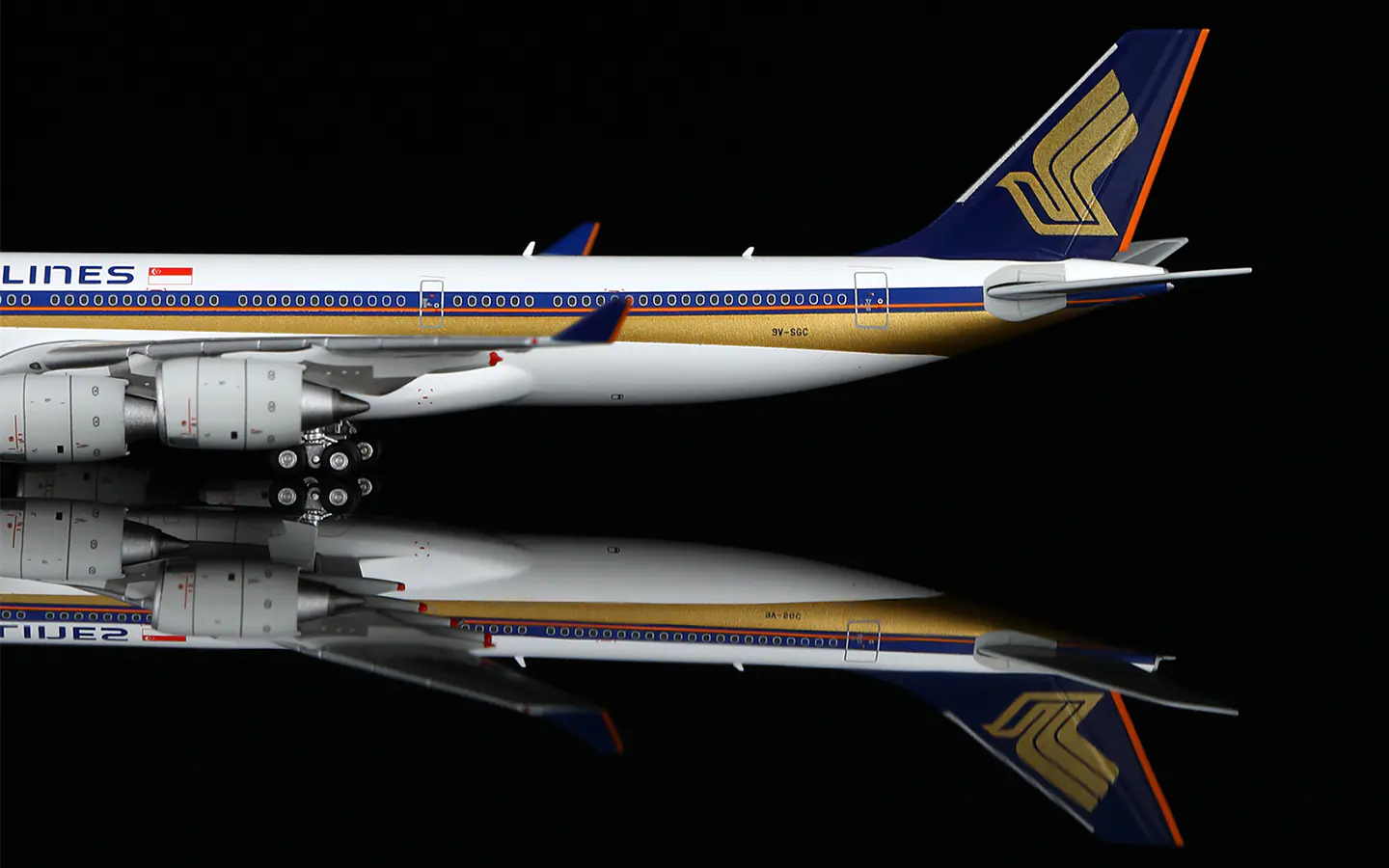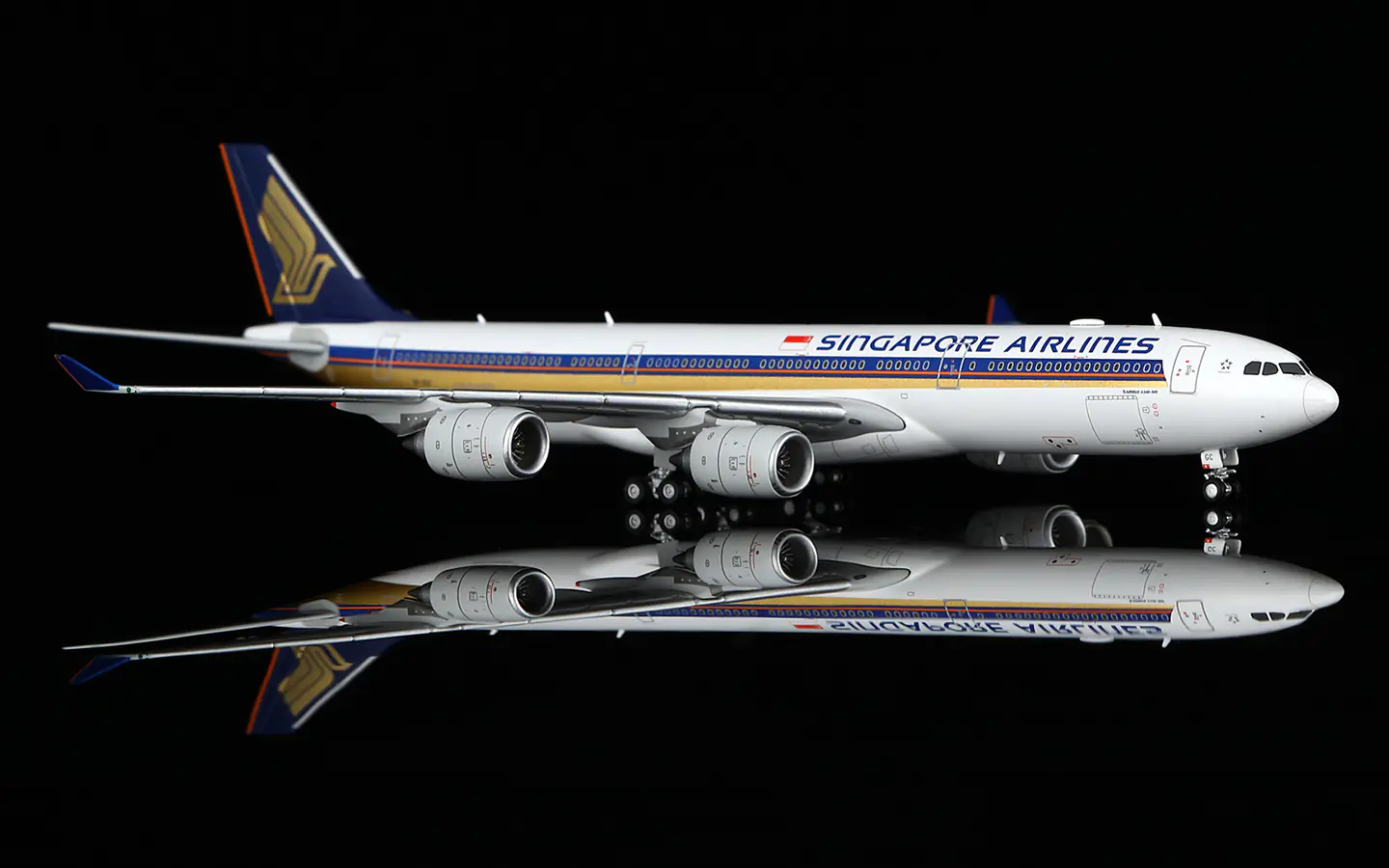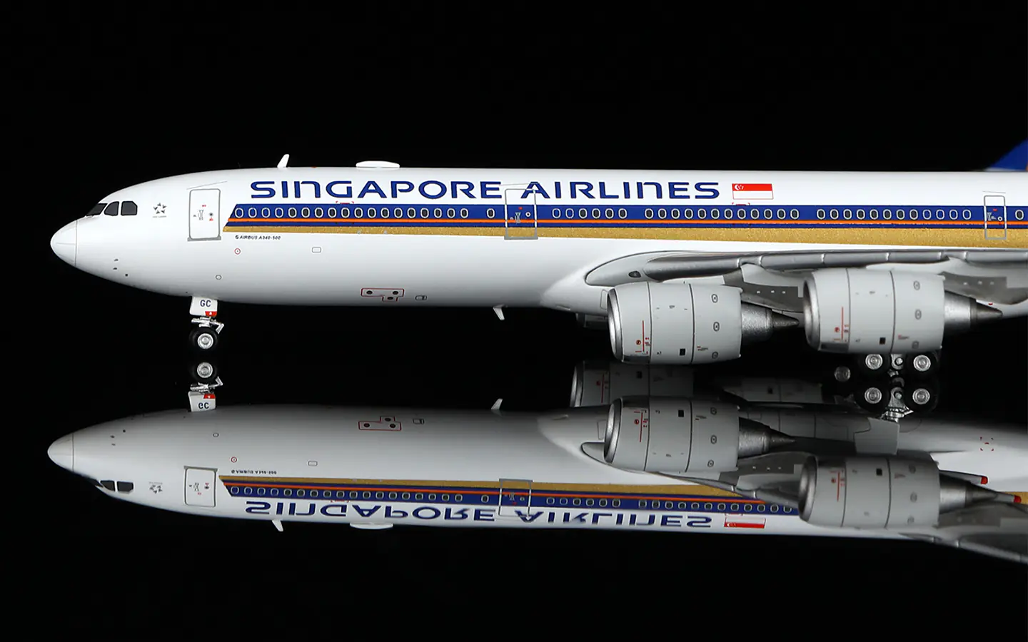 Collectible Diecast Aircraft Model Airbus A340-500 A530103F HX Models 1:400 Singapore Airlines Reg: 9V-SGC Flaps Down