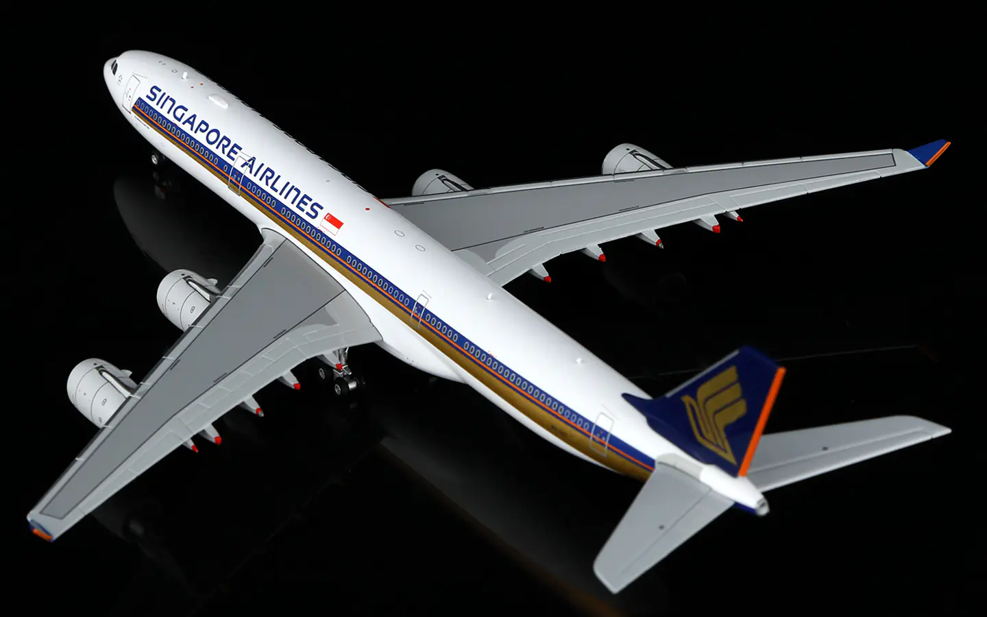 Collectible Diecast Aircraft Model Airbus A340-500 A530104F HX Models 1:400 Singapore Airlines Reg: 9V-SGD Flaps Down