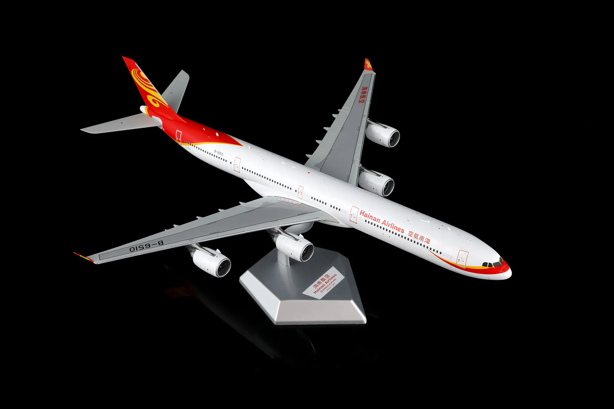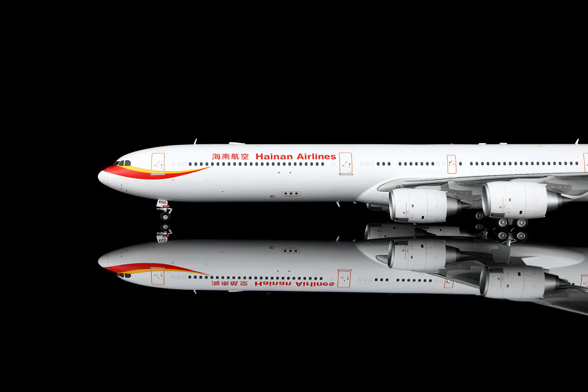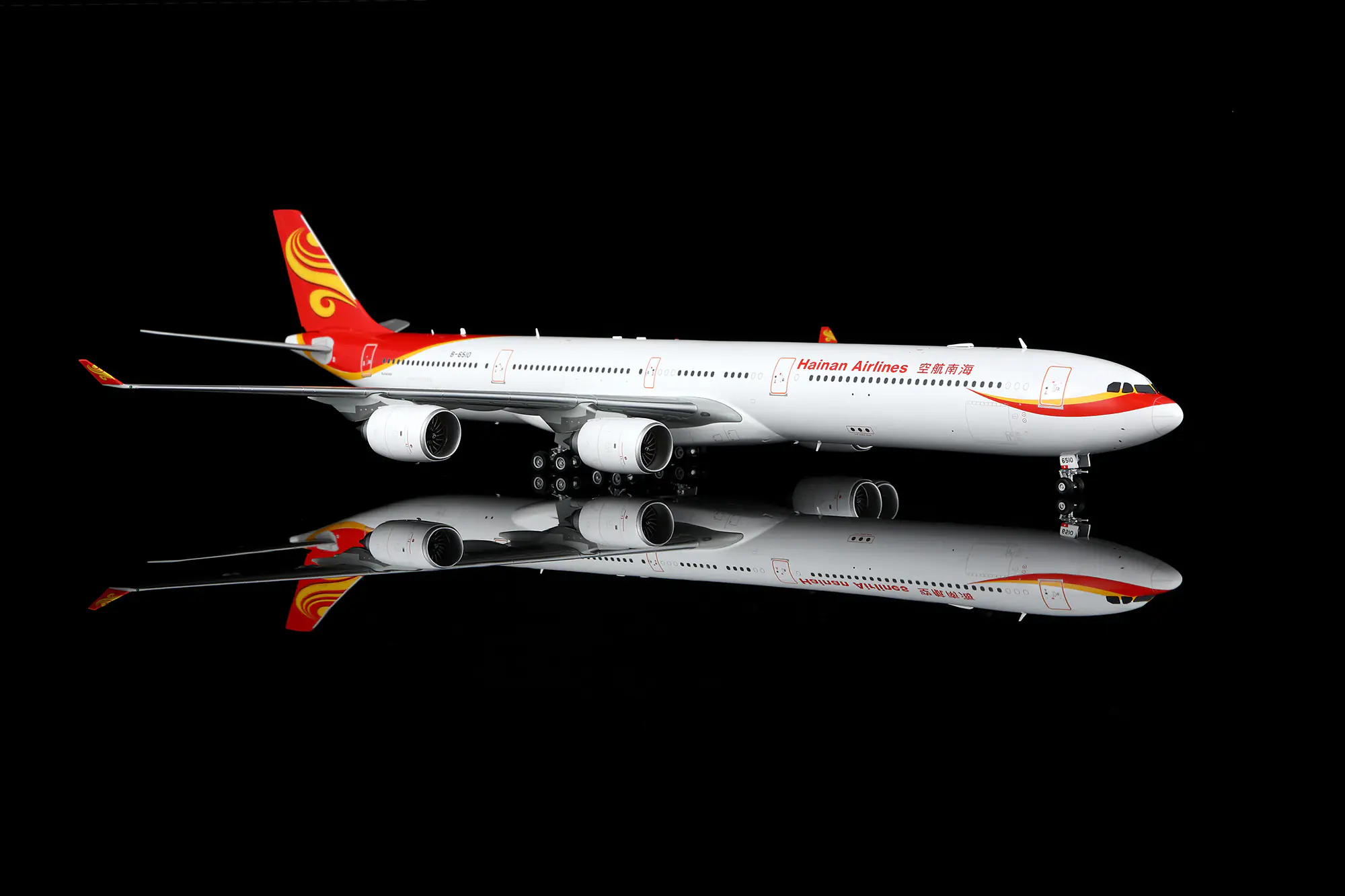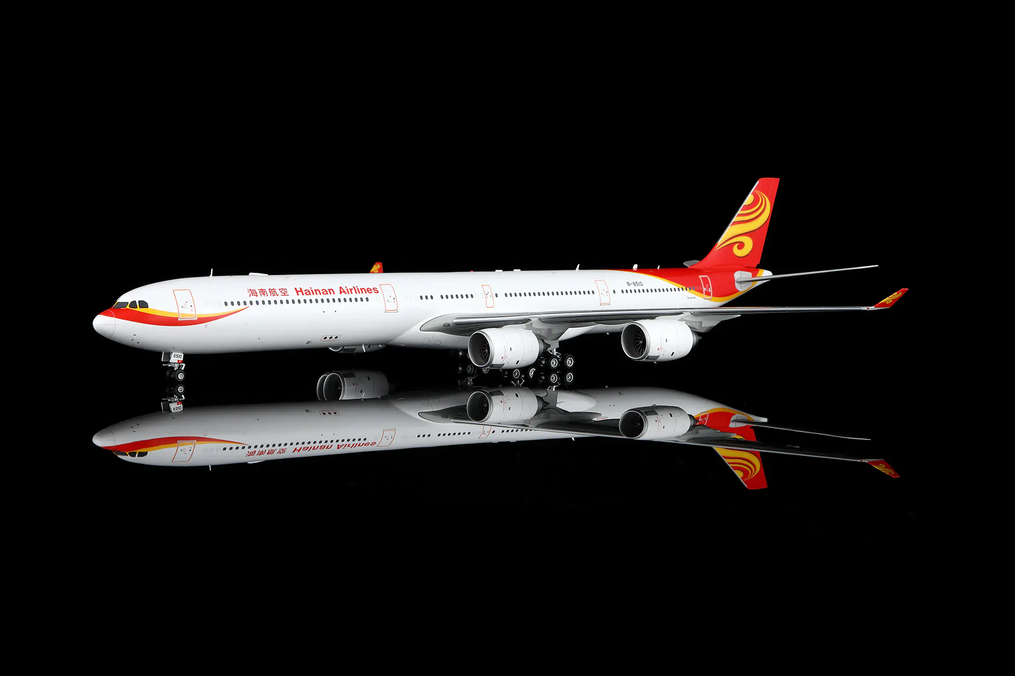 Collectible Diecast Aircraft Model Airbus A340-600 L2117FD SQ Wings 1:200 Hainan Airlines Reg: B-6510 Down Flaps