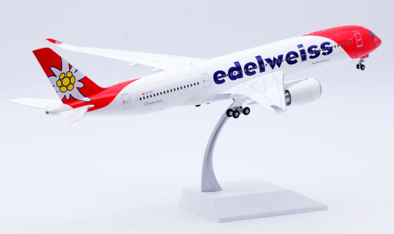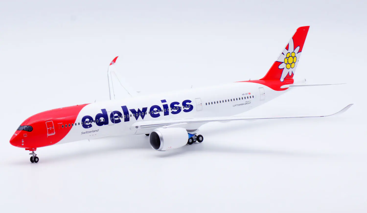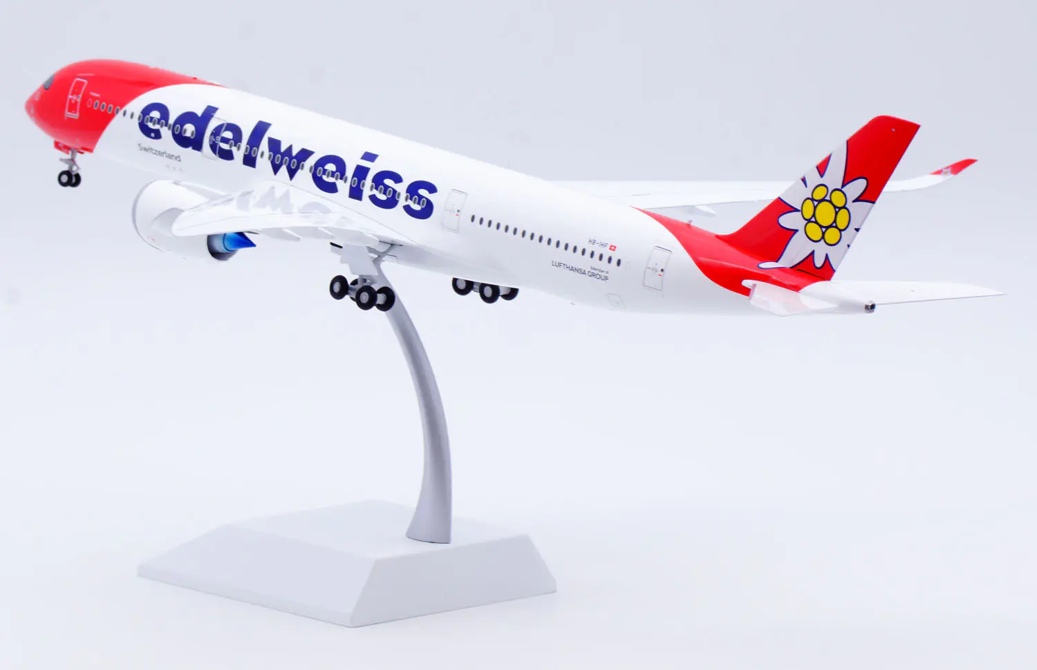 Collectible Diecast Aircraft Model Airbus A350-900XWB XX20569A JC Wings 1:200 Edelweiss Airlines Reg:  HB-IHF Flaps Down