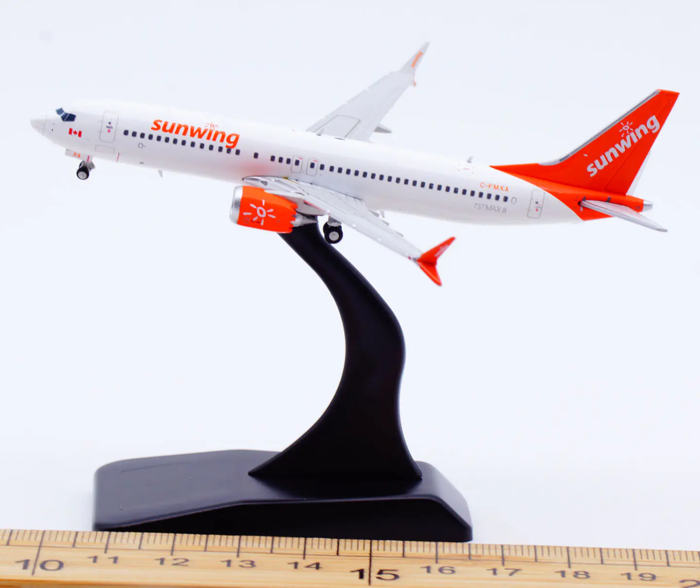 Collectible Diecast Aircraft Model Boeing B737-8 Max LH4314 JC Wings 1:400 Sunwing Reg: C-FMXA