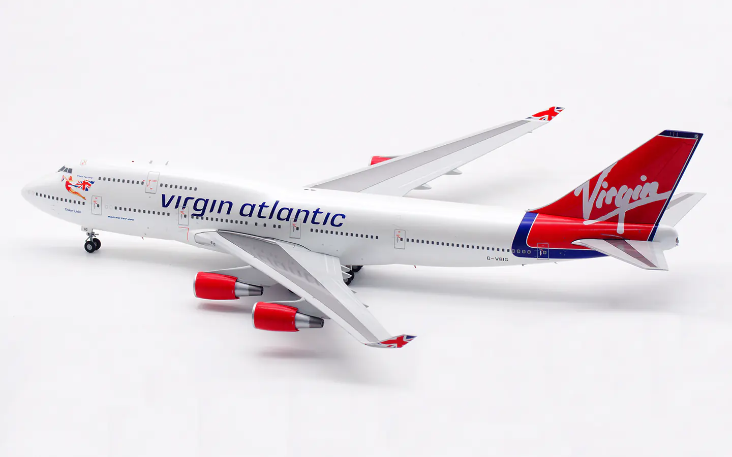 • Collectible Diecast Aircraft Model Boeing B747-400 XX20459 JC Wings 1:200 Virgin Atlantic Reg: G-VBIG Collectible Diecast Aircraft Model Boeing B747-400 XX20459 JC Wings 1:200 Virgin Atlantic Reg: G-VBIG $156.60