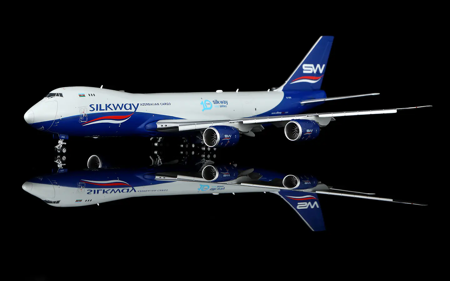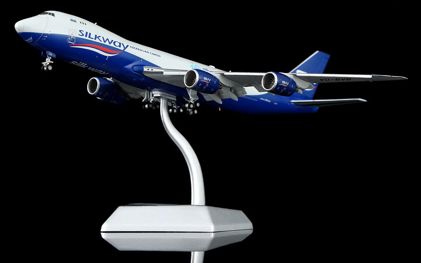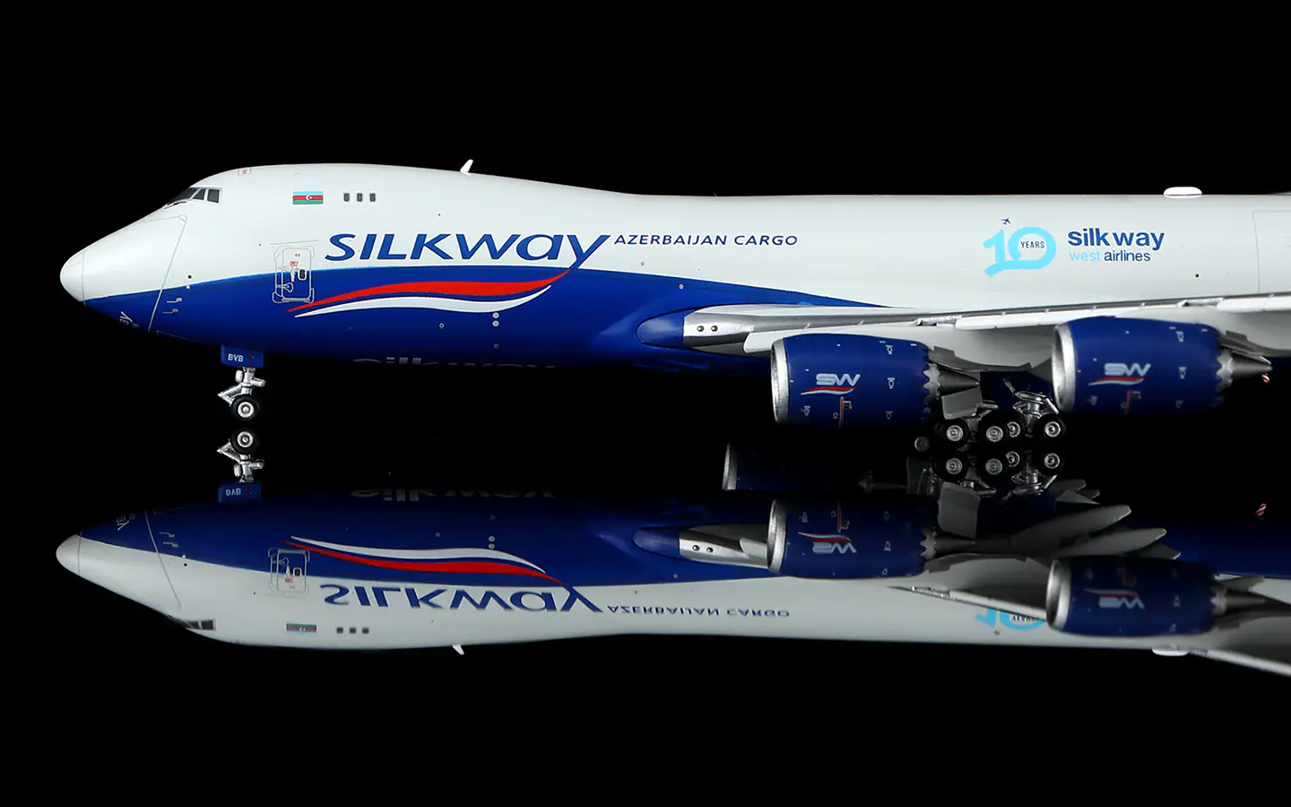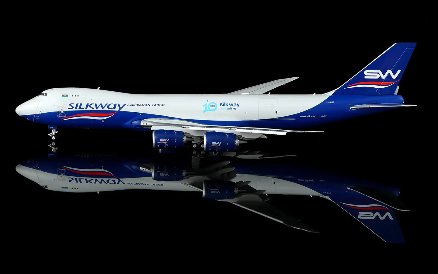 Home 1:400 Boeing Collectible Diecast Aircraft Model Boeing B747-8F B632501F HX Models silkway west airlines Reg: VQ-BVB Flaps Down
