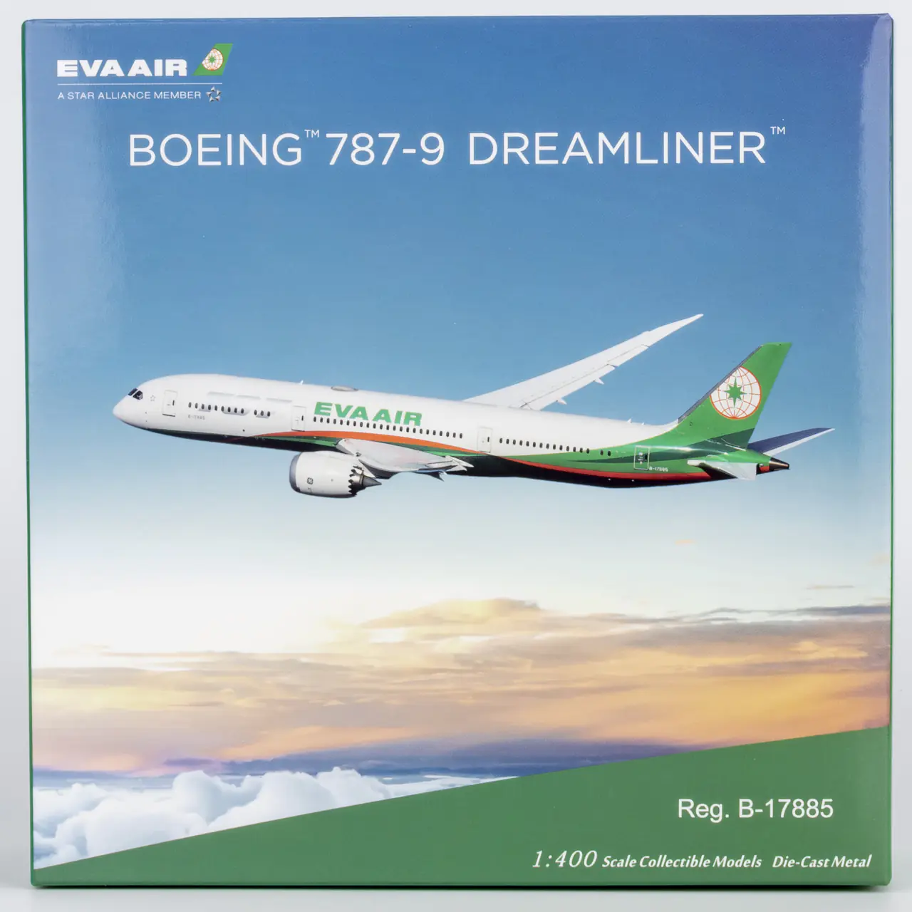 Collectible Diecast Aircraft Model Boeing B787-9 48017 NG Models 1:400 Eva Airways Reg: B-17885
