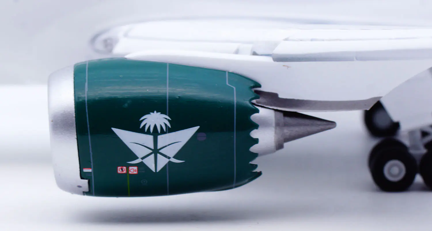 Collectible Diecast Aircraft Model Boeing B787-9 XX20627A JC Wings 1:200 Saudi Arabian Airlines [94th National Day] Reg: HZ-ARB Flaps Down