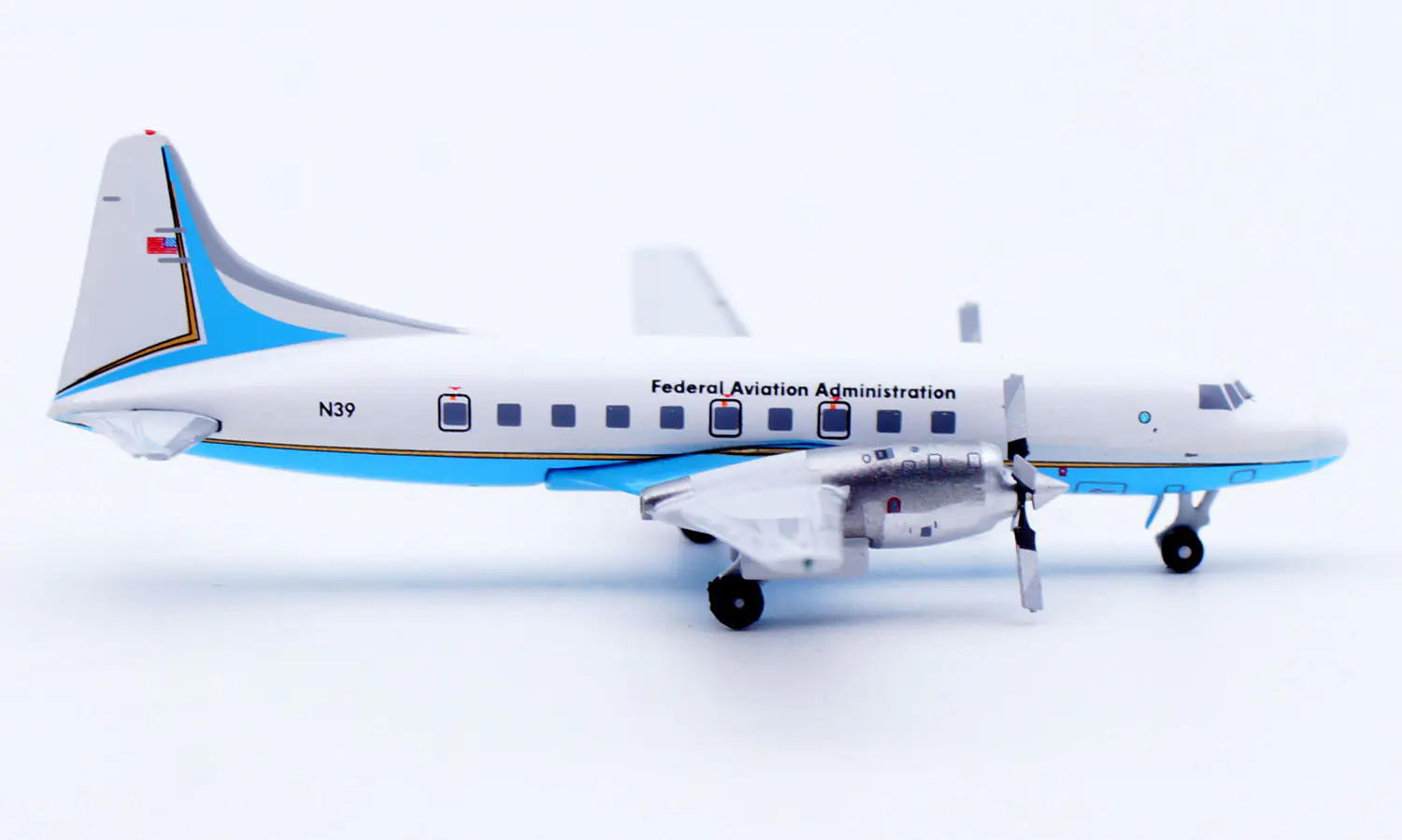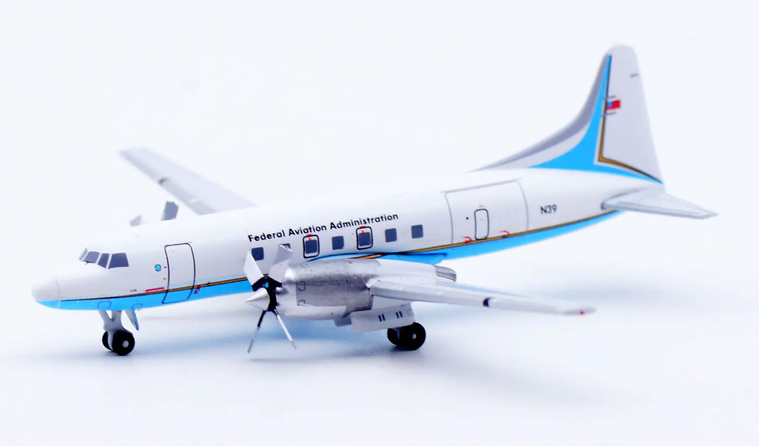 Collectible Diecast Aircraft Model CONVAIR CV-580 XX40313 JC Wings 1:400 FAA Federal Aviation Adminisration Reg: N39