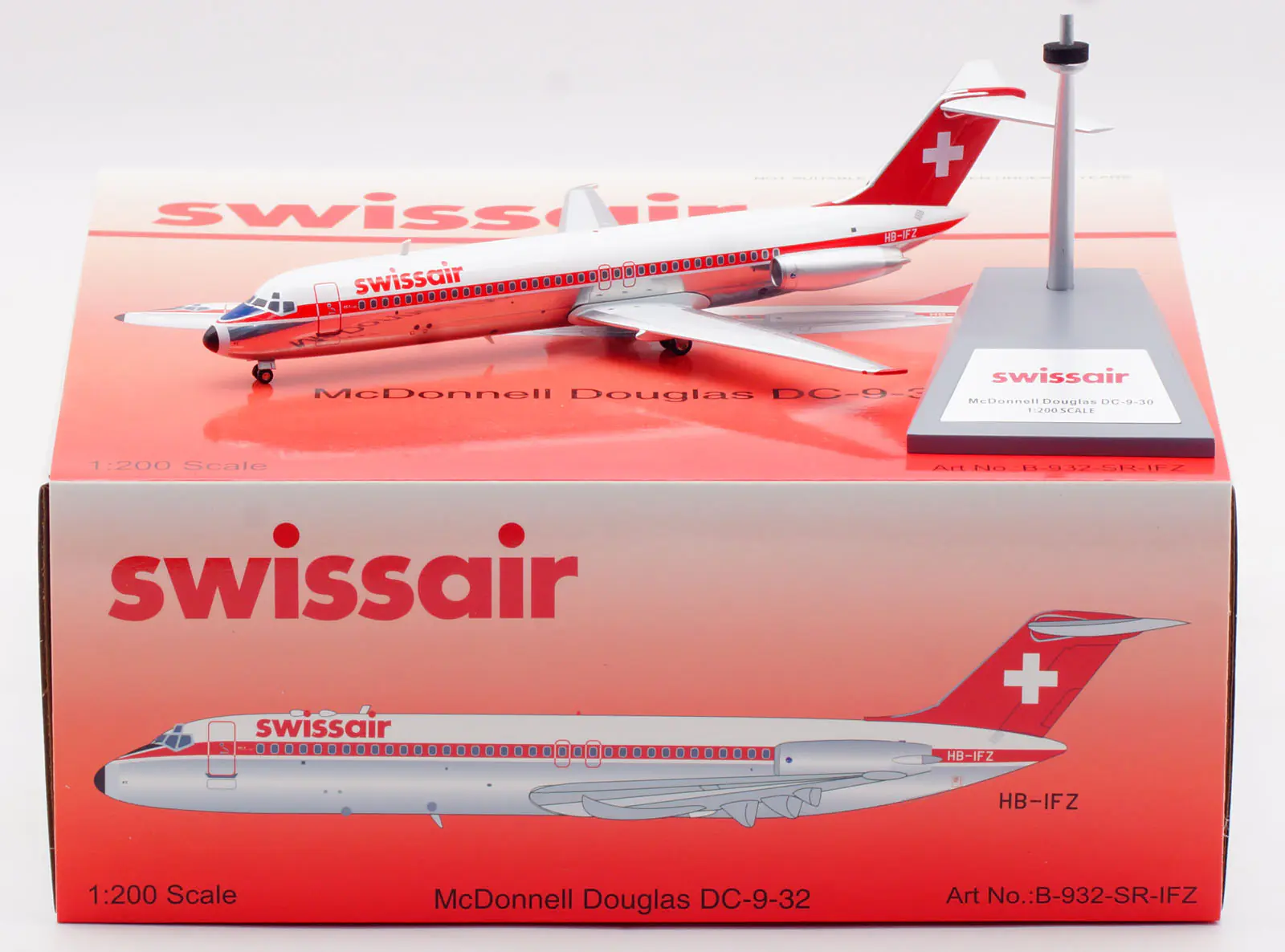 Collectible Diecast Aircraft Model McDonnell Douglas DC-9-30 B-932-SR-IFZ B-Models 1:200 SWISSAIR Reg: HB-IFZ