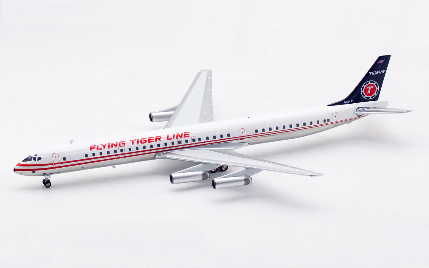 Collectible Diecast Aircraft Model McDonnell Douglas DC-8-63 IF863FT1125P INFLIGHT 1:200 Flying Tiger Line Reg: N624FT
