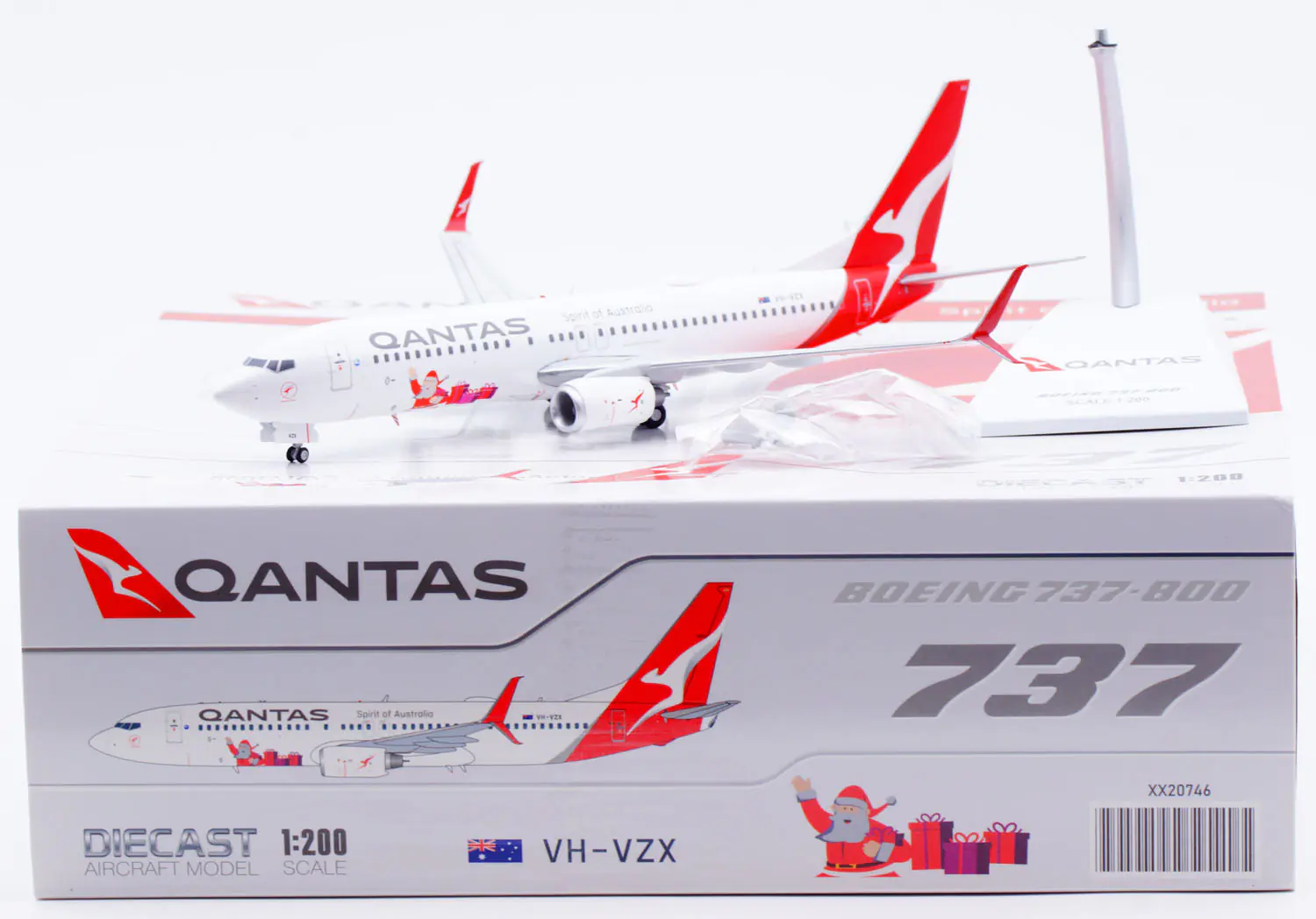Collectible Diecast Aircraft Model Boeing XX20746 JC Wings 1:200 Qantas B737-800 [Santa] Reg: VH-VZX