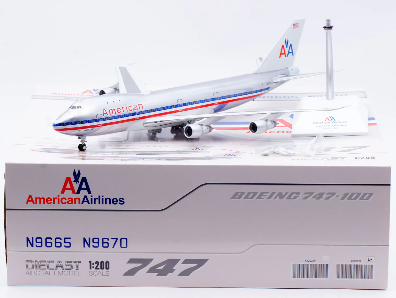 Collectible Diecast Aircraft Model Boeing XX20291 JC Wings 1:200 American Airlines B747-100 Reg: N9670